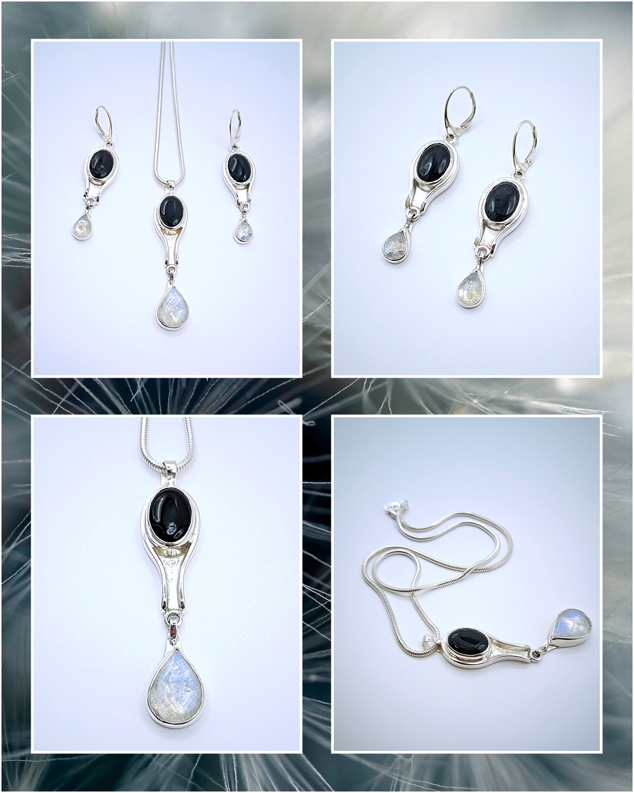 ismernek). A két kő szépen kiegészíti egymást. A fekete és az áttetsző kristályfehér,
