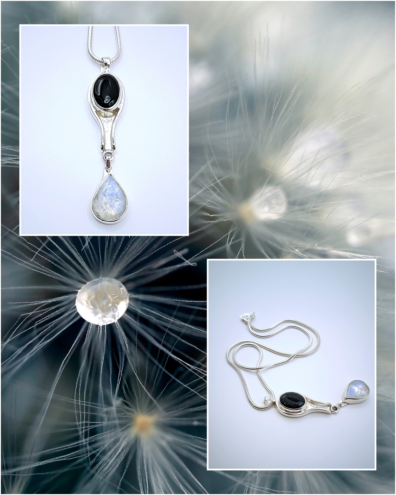 ezrelékes Sterling ezüst, ónix, szivárvány labradorit