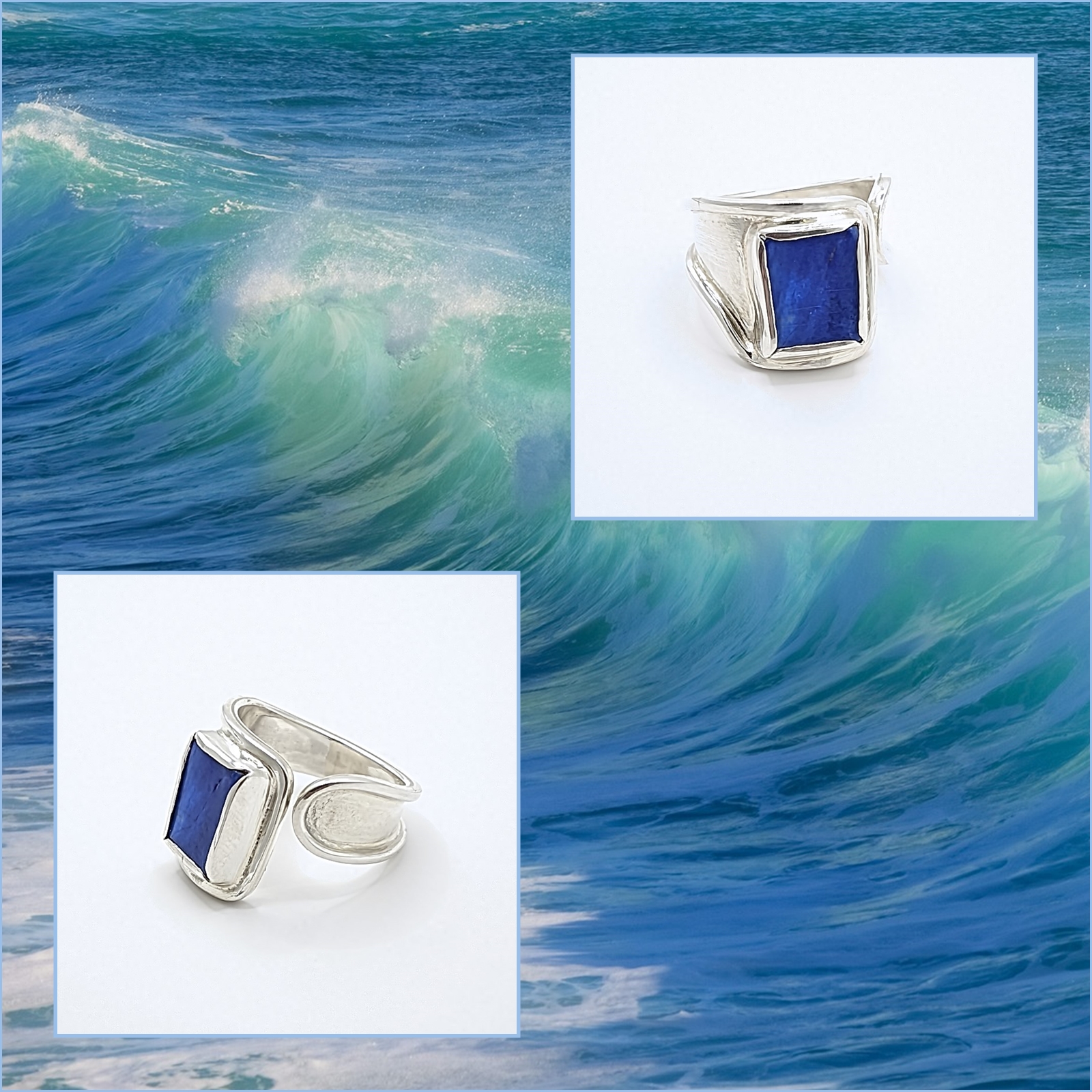 ásvány. A gyűrűben a szögletes kő formáját kicsit enyhíti a lágy vonalvezetés,